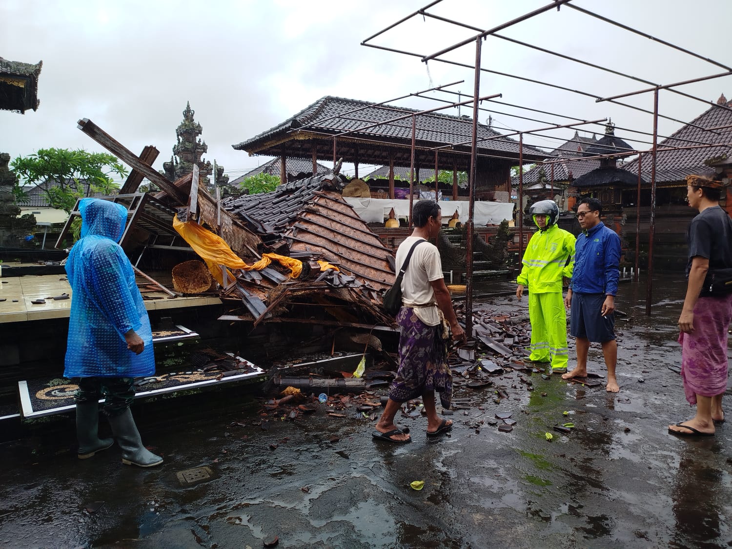 Piasan Pura Desa Adat Lebih Roboh Akibat Angin Kencang dan Hujan Deras